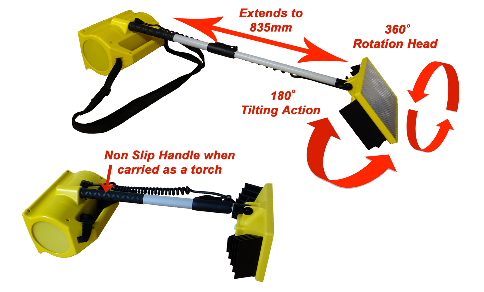 Applications: Emergency scene lighting, Road side accidents, Crime Scenes, Tunnel and Track Inspections, Maintenance Work.