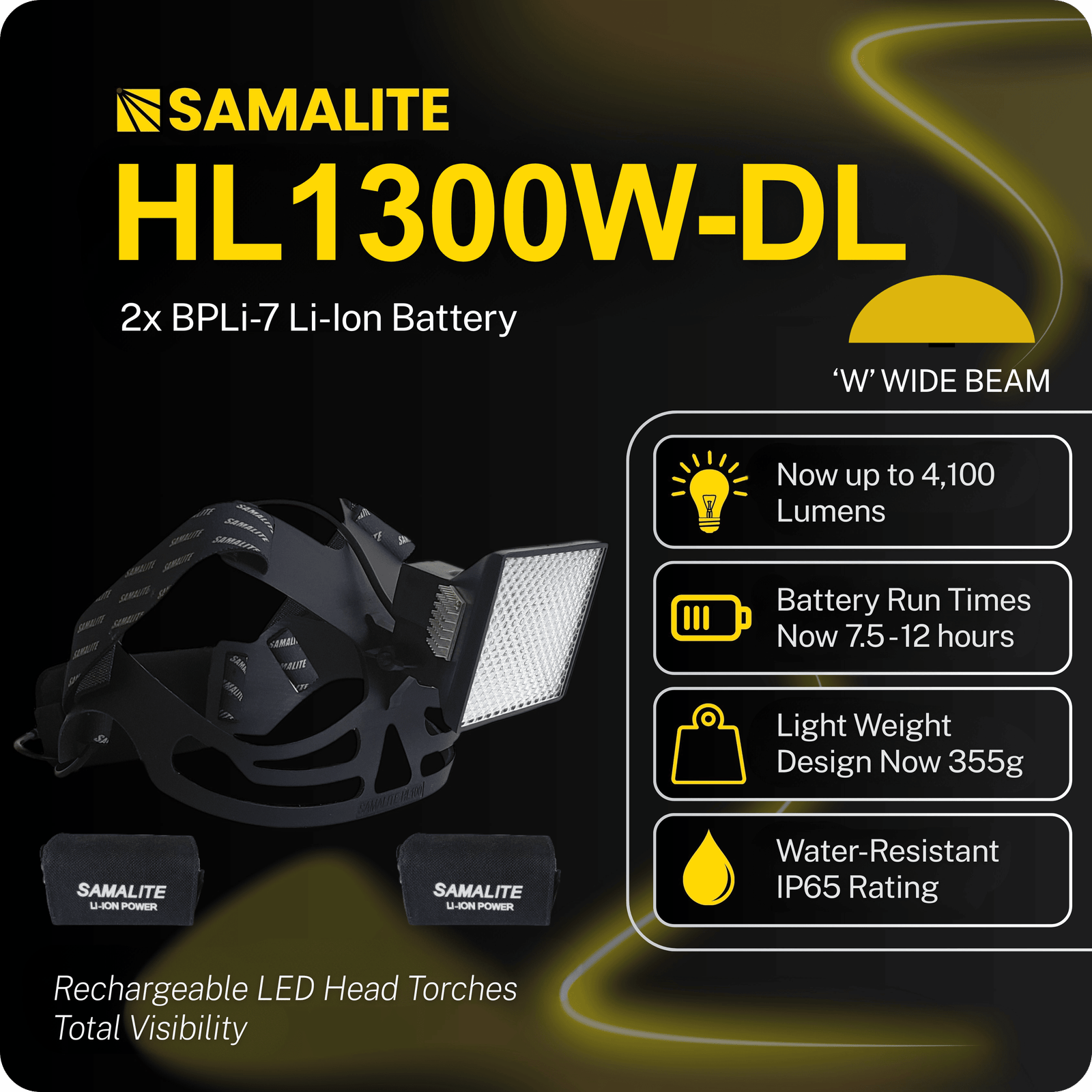 SAMALITE HL1300W-DL (4,100 LUMENS comes with NEW dual BPLi-7 Li-Ion batteries)